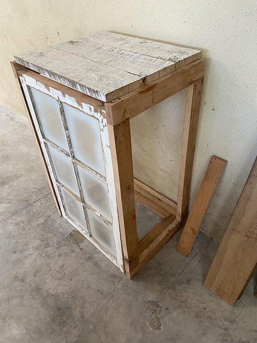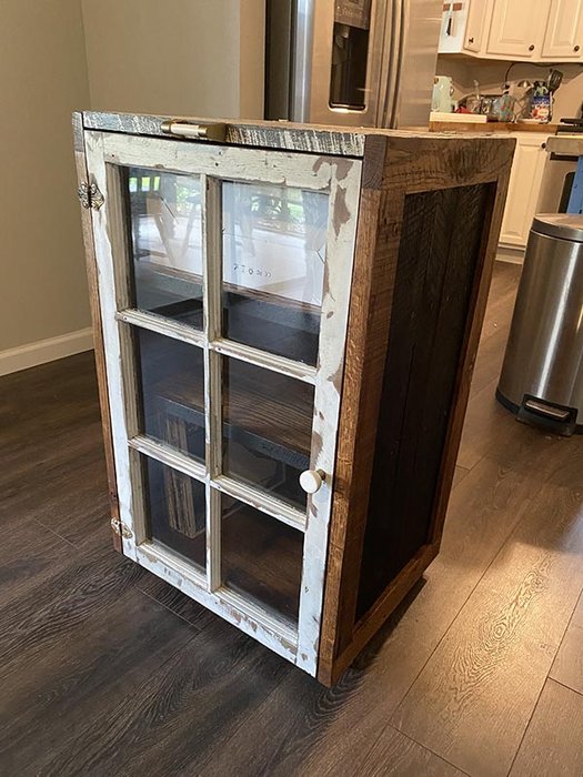 When my niece announced she was getting married the ideas on what to get/make for a gift started to flow. I landed on building a custom record player stand when I saw that she had a record player on her registry. I built this one from a reclaimed wood framed window and some scraps of barn wood from another project. The barn wood was oak and it was never painted, instead they had charred the outside surface to seal it. Not only did it look awesome, but it also had an excellent smoky smell.